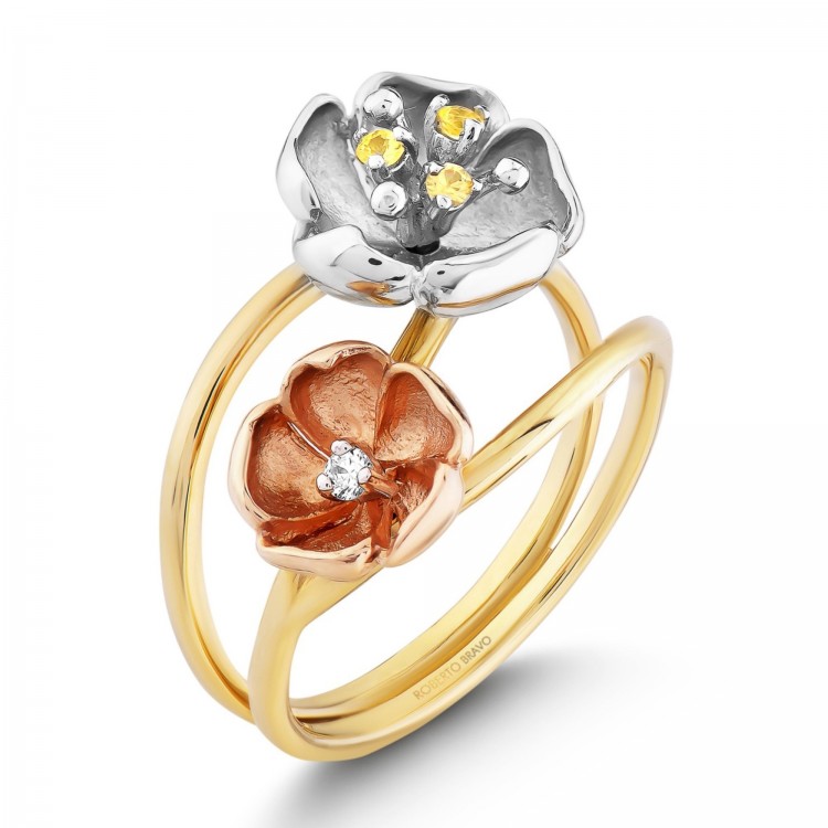 Колекція Kareena італійського ювелірного бренду Roberto Bravo - це вишуканий екземпляр ювелірного мистецтва, який вражає своєю витонченістю та неповторним стилем. Прикраси виконані з матового золота 585 проби на основі сучасних технологій. Кожна деталь колекції виконана з великою любов'ю та увагою до деталей. Вироби поєднують у собі три види золота - біле, жовте і рожеве, а також дорогоцінні камені різних відтінків, які додають ніжності та елегантності. Всі ці елементи чудово поєднуються один з одним, створюючи неповторний образ, який ідеально доповнюватиме будь-яке вбрання.